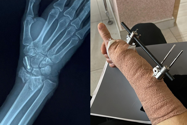 Při jednom skoku si přivodil otevřenou zlomeninu zápěstí. Po ošetření na místě ho organizátoři převezli do místní nemocnice, kde musel podstoupit okamžitou operaci. V tu chvíli již byl v kontaktu s naší asistenční službou, která nemocnici dala garanci proplacení operace.